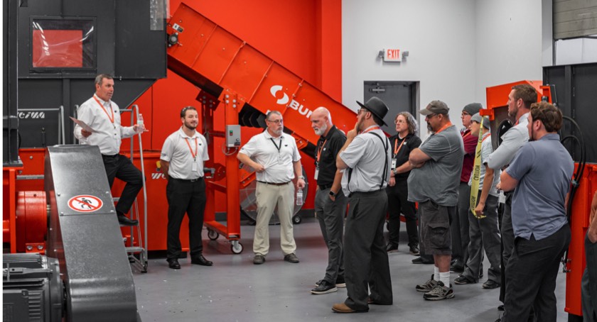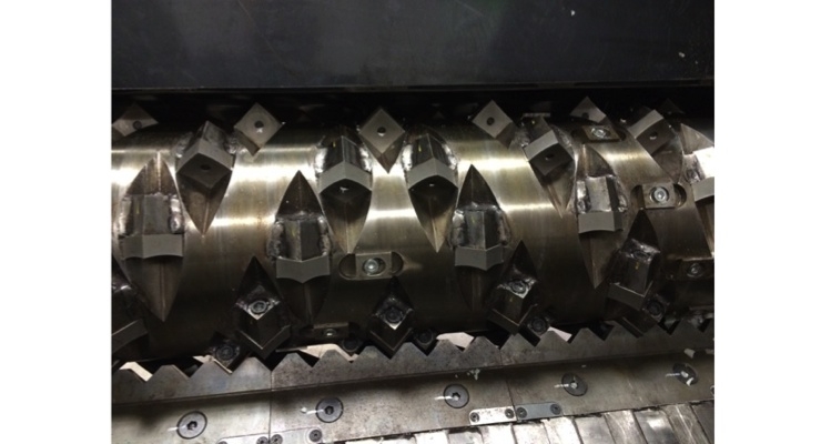 Shredding and briquetting equipment recycles scrap material.